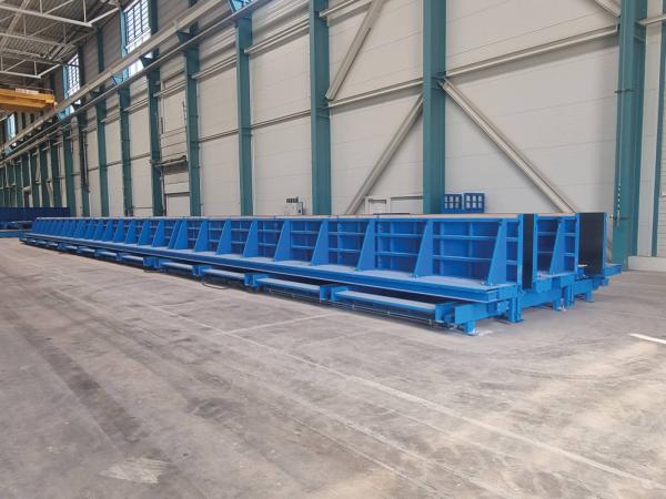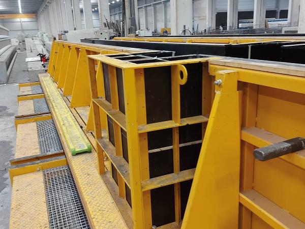 Die Bibat mit Aussparungen ist eine hydraulisch verfahrbare Bi-Taschen-Batterieschalung, die speziell für die Herstellung von Fertigteilstützen mit mehreren Konsolen entwickelt wurde.