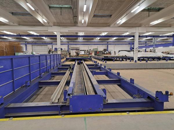 Die Zentralschiebebühne von Construx Weckenmann kombiniert die Vorteile einer klassischen Palettenumlaufanlage mit der Flexibilität einer stationären Produktion. Sie eignet sich ideal für Betonfertigteilwerke, die ein Höchstmaß an Effizienz, Platzersparnis und Anpassungsfähigkeit benötigen.