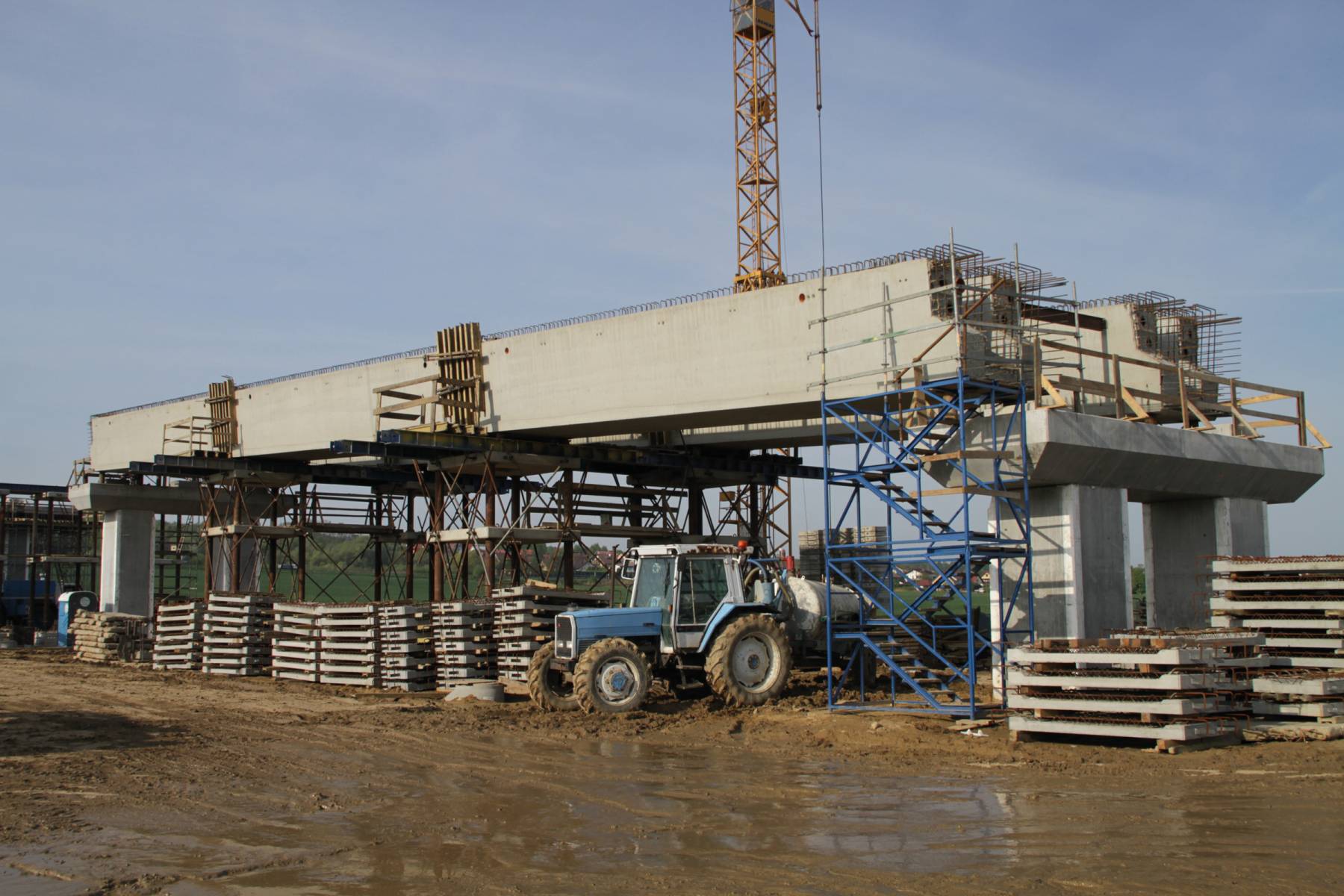 This casting bed has self-reacting size-forms for 4 types of U-shaped bridge beams.