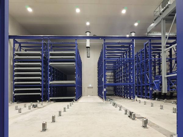 Las estanterías de almacenamiento permiten optimizar el espacio, pueden ser aisladas y, si es necesario, se pueden equipar con un sistema de curado totalmente automatizado y controlado.